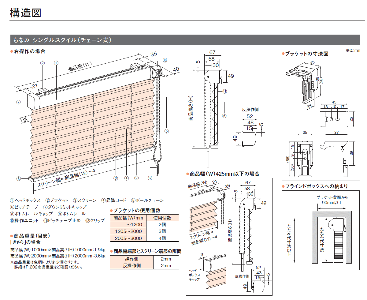 構造図(重量目安、ブラケット個数、サイズ等)はこちらをご覧下さい。