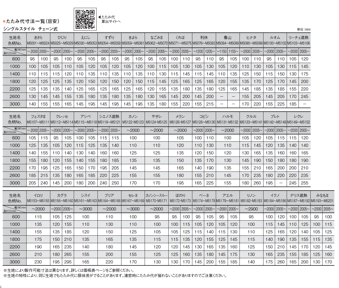 シングルスタイル チェーン式 たたみ代の目安はこちらをご覧下さい。