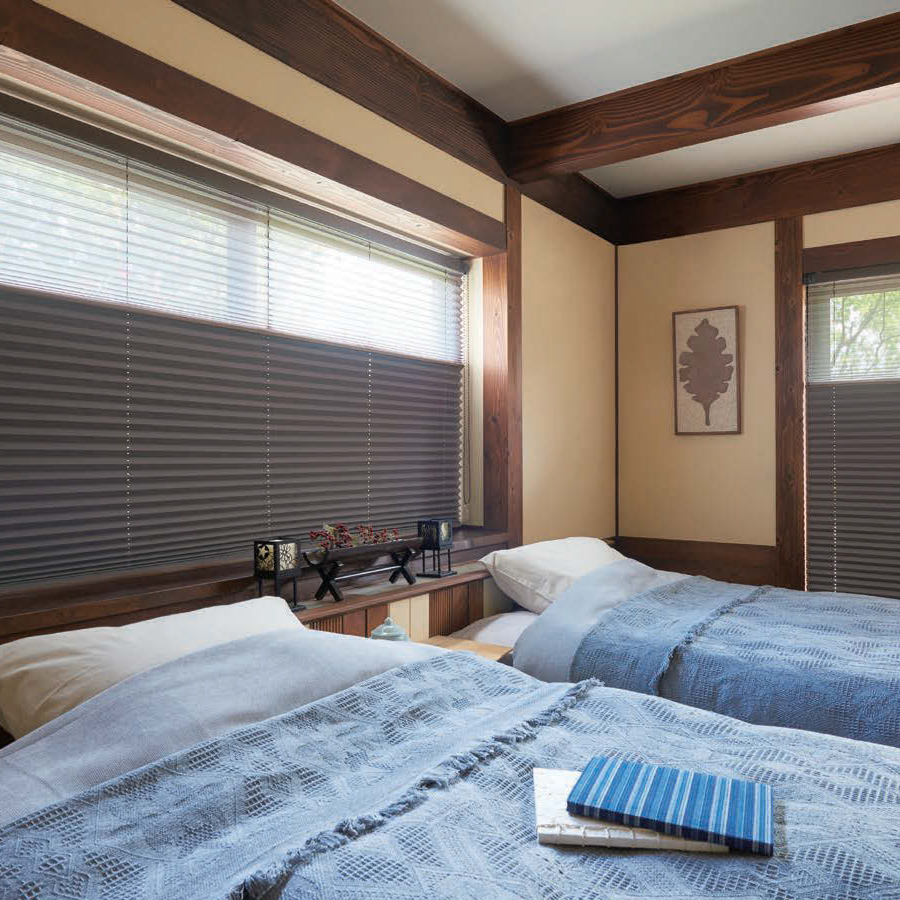 プリーツスクリーンプレトは光を和らかく映す、温かみのある和紙調の生地。春の訪れを感じさせるような優しいカラーを揃えました 。ニチベイのプリーツスクリーン「もなみ」シリーズ(M5142 M5143 M5144 M5145 M5146 M5147 M5148)