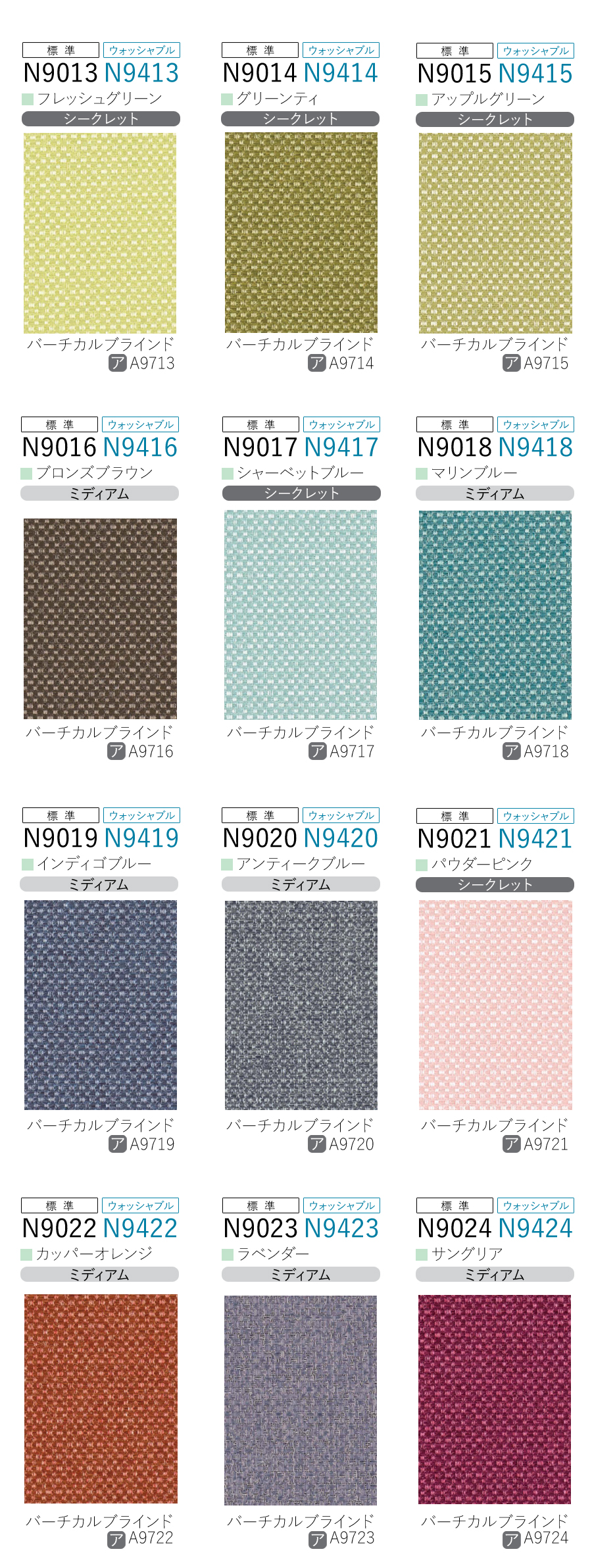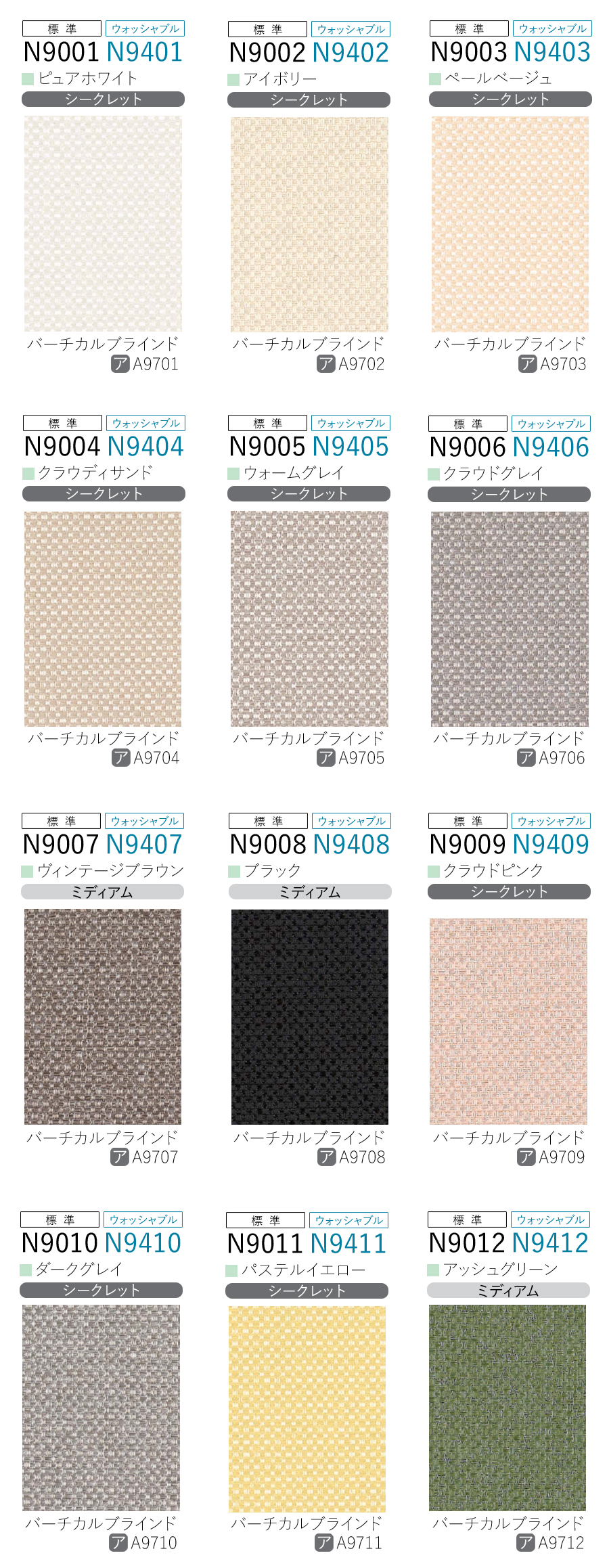 生地の透過度(シースルー、ミディアム、シークレット、遮光)等についてはこちらをご覧ください